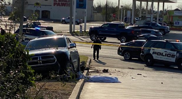 A segundos de morir, un hombre joven, chocó contra el anuncio del restaurante de hamburguesas Sonic, en la esquina de carretera 83 Sur y calle San Luis, iba fatalmente herido de bala, conduciendo en solitario, una vagoneta Dodge Durango, color oscuro.