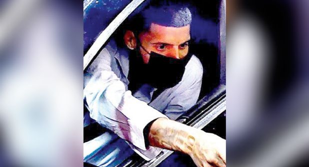 El hombre con cubrebocas, se alcanza apreciar que tiene nariz grande, tipo aguileña, es delgado, piel morena con su mano derecha tatuada (muñeca y dedos), es de cabello muy corto casi a rape, pero tupido, ojos negros.