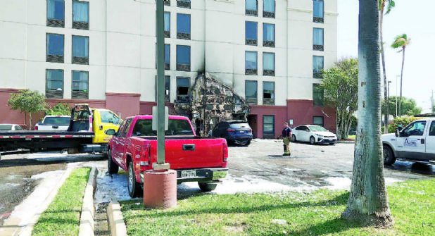 El hotel Hampton Inn, en la cuadra 79 de San Darío, se incendió ayer a las 10:22 de la mañana, provocado por una camioneta que cobró fuego en el estacionamiento del lado sur y alcanzó al edificio. No hubo lesionados, rápido se desalojó el lugar, todos los pisos; de inmediato se apagaron las llamas por los bomberos, dijo Rick Oliva, vocero del departamento.