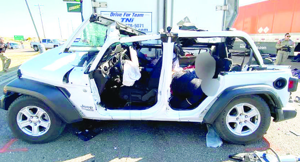 El traficante de indocumentados tomó a gran velocidad la salida número 38 de la carretera, pero por lo mismo, perdió el control de la unidad y fue a dar al camino lateral, sobrepasó la vía paralela a la 35 y se introdujo en los terrenos de la estación de combustible, donde se impactó contra la parte trasera de un remolque.