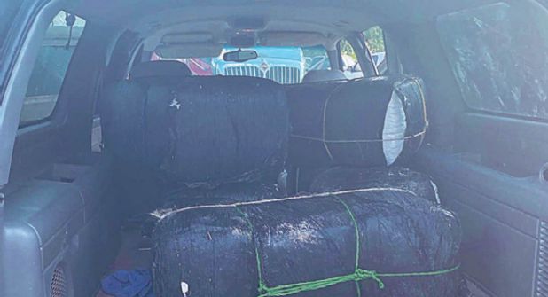 La Patrulla Fronteriza confiscó 350 libras de marihuana en una camioneta Suburban, dentro de un yonque de autos, corretearon el mueble hasta que el conductor saltó de la vagoneta en marcha, corrió al río y cruzó a México.