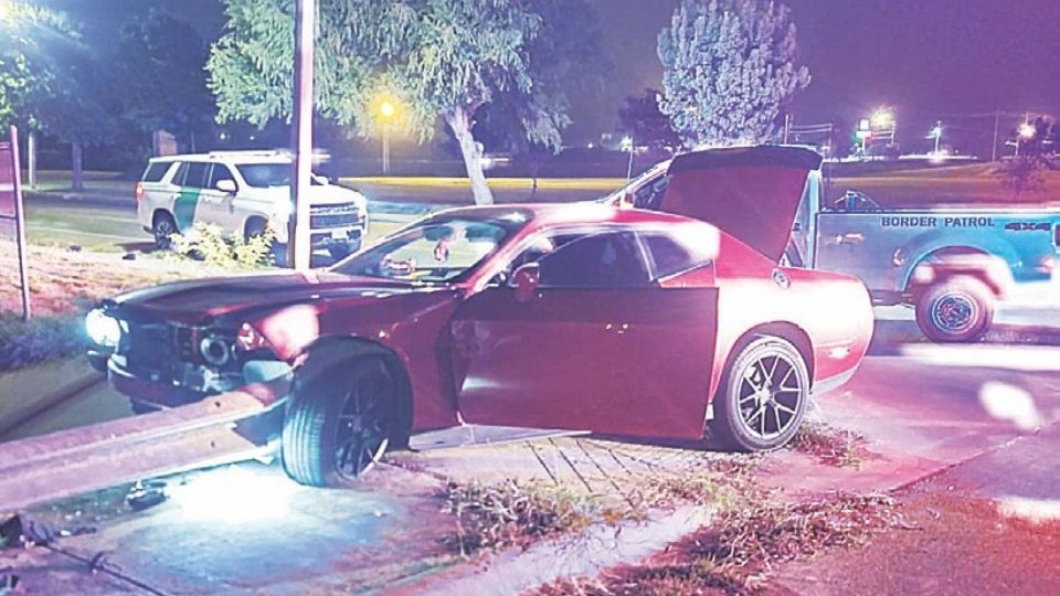 La agencia federal informó que un patrullero vio a varias personas dentro del deportivo rojo, arrancaron a gran velocidad, intentó detenerlos un policía fronterizo, pero la velocidad fue demasiada, abriendo gran trecho entre patrulla y auto. A una cuadra de alcanzar la carretera 83 Sur, el automóvil fuera de control, se fue contra el riel protector del canal que corre paralelo a Lope de Vega. Los extranjeros sin documentos migratorios, fueron asegurados ahí mismo, sólo que el conductor del Challenger huyó.