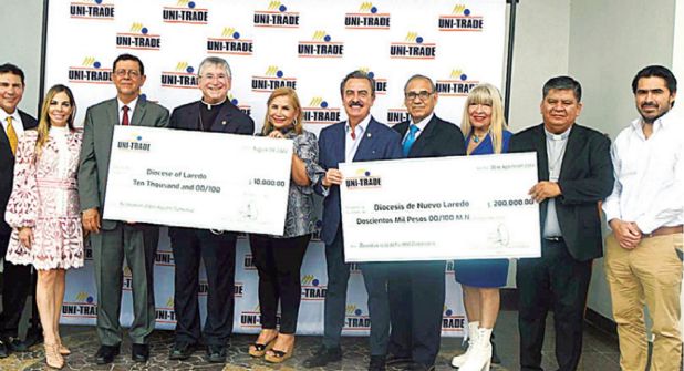 En cumplimiento a su labor socialmente responsable, directivos del Grupo Uni-Trade entregaron donativos a las diócesis católicas de Laredo y de Nuevo Laredo. La entrega fue encabezada por el A.A. Eduardo A. Garza Robles y la recibieron los obispos de Laredo, James Tamayo y de Nuevo Laredo, Enrique Martínez.