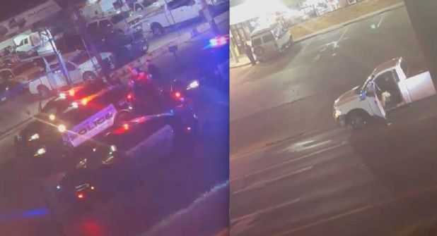Llegaron los patrulleros municipales y el hombre no se rindió, dio de reversa a su camioneta Ford F-150, color blanco, arrollando a una oficial (fuera de peligro) y pegándole a un auto oficial, el tipo enfiló al sur, llegó hasta el puente “Puerta de las Américas” y cruzó sin parar a lado mexicano.