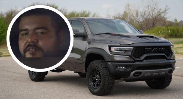 Se busca al tipo de barba y bigote de la foto que acompaña a esta nota, para interrogarle en relación con el robo de una camioneta Dodge Ram, 1500, RTX, color gris, año 2022, troca con valor no menor a 80 mil dólares, hay recompensa a quien lo identifique.