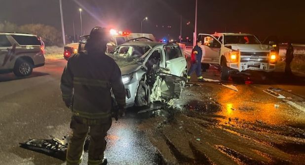 Y a las 00:49 minutos del domingo 26, una damita de 26 años de edad y su acompañante varón, de 27, muy graves fueron trasladados al citado nosocomio, tras chocar su pequeña vagoneta cuatro puertas color gris claro, contra una camioneta de trabajo una Ford F-350, “dully” (llantas cuatas traseras) y tumbaburros, tripulada por 4 trabajadores.