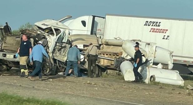 Un camión “pipa” que iba al norte por la Carretera Interestatal 35, volcó a las 5:00 de la tarde de este miércoles en la milla 22.