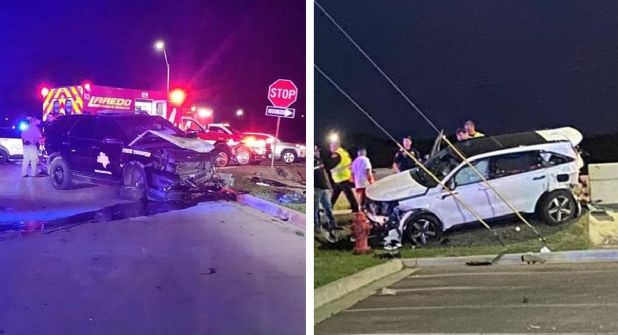 Pasadas las 08:00 de la noche de este 22 de abril el percance ocurrió entre una camioneta “pick up” color gris oscuro, la patrulla del Departamento de Seguridad Pública de Texas, una vagoneta de color blanco y otro auto.