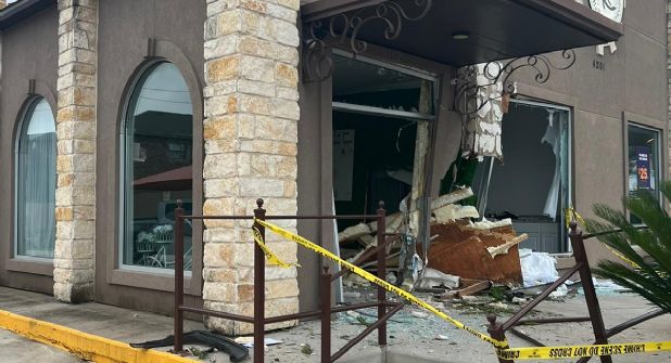 Un ebrio conductor perdió el control de su camioneta y se metió con todo y vehículo a un edificio comercial en b, causando severos daños.