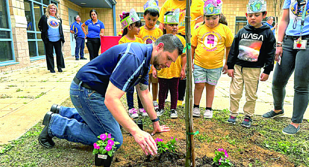 El comisionado del Precinto 1, Jesse González, y Janell Coe González, de la Fundación The Giving Tree, acudieron a dichos planteles para llevar árboles y junto con los niños los sembraron en el patio.