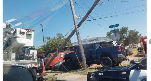 Un apagón por el choque de cinco autos y el derribo de un poste de electricidad ocurrió esta tarde en la esquina de Saunders y New York, frente a la pista del aeropuerto y la oficina de correos.