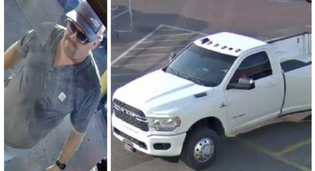 El sospechoso conduce o tripula una camioneta Dodge Ram, en color blanco, con doble rodada en el eje trasero (Dually), al menos en ella llegó al lugar del tractor que se llevó.
