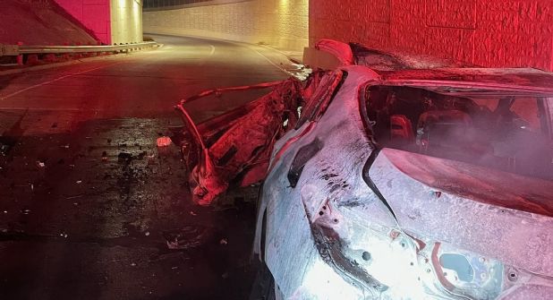 Este accidente fue en solitario, los chicos salieron del asfalto, probablemente el conductor perdió el control de carro por la velocidad en que iban, entonces volaron solo para ir a estrellarse con uno de los pilares, muro o pared de concreto del complejo vial, en un sitio ubicado como a 100 yardas al sur del entronque con la carretera estatal 359.