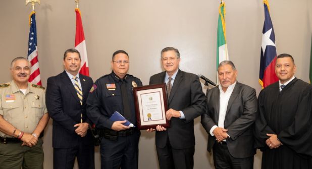 Fue precisamente el Juez de Paz Danny Domínguez el encargado de tomar el juramento al nuevo Jefe de Policía de Laredo College.