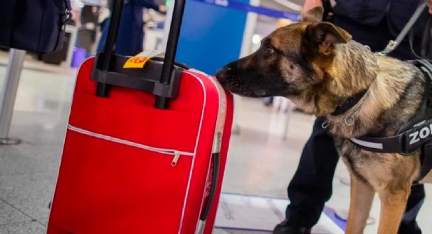 Esta vez, Valdez no tuvo tanta suerte, porque un can adiestrado pasó sobre los equipajes, alertando en dos maletas.
