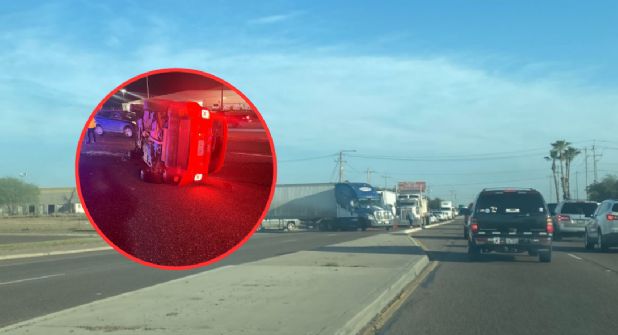 Un choque de tres autos con uno de ellos volcado y dos damitas de 19 y 20 años de edad con serias lesiones, ocurrió la tarde de este lunes, sobre bulevar Bob Bullock carriles al sur, a la altura de la empresa de mensajería y paquetería Federal Express, junto al aeropuerto.