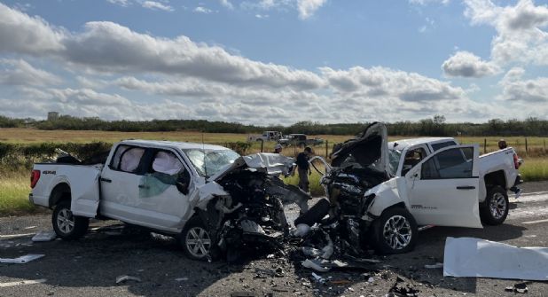 Ayer a las 10:30 de la mañana, agentes del DPS de Texas y alguaciles del Departamento del Sheriff del Condado de Zapata, acudieron al reporte de un impacto frontal de una troca Chevrolet Silverado doble tracción y una Ford F-150, también de doble diferencial, ambas de color blanco.