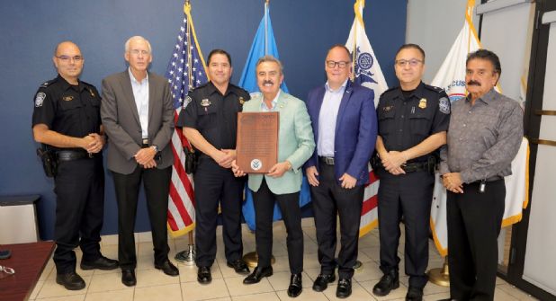 La placa fue en reconocimiento al invaluable apoyo a la Oficina de Aduanas y Protección Fronteriza tras los daños ocasionados por la tormenta del pasado mes de septiembre.
