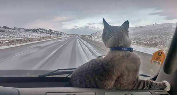 Al pequeño gato lo llamaron Grayson, y su vida de viajero comenzó. Durante los últimos siete años, ha acompañado a la pareja en sus rutas a lo largo y ancho de los Estados Unidos, con excepción de Alaska y Hawái.