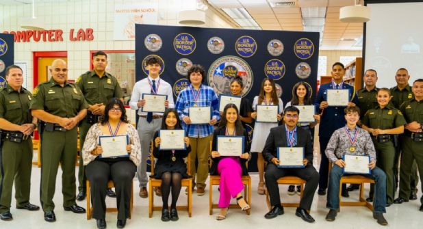 Jaime Fierro, Subjefe de la Patrulla Fronteriza, hizo entrega de los reconocimientos el martes pasado en la escuela preparatoria Martin a Joselyn Ramírez; a David Alexander González, de la escuela Cigarroa; Jessenia Mota, del centro educativo Lyndon B. Johnson.