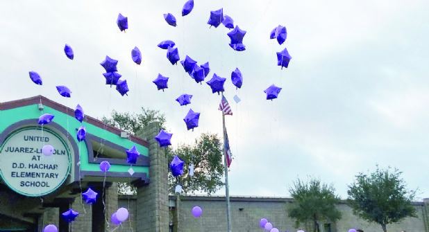 Los estudiantes de la Primaria Juárez-Lincoln están de luto por la pérdida de su compañerita Gia Sánchez, por lo que lanzaron globos al cielo como una forma de honrar a la dulce y extrovertida niña que siempre tuvo una sonrisa con hoyuelos para ellos.