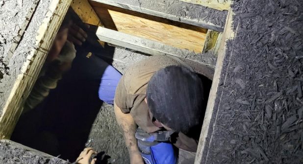 Bajo una montaña de tierra, en un compartimiento oculto de madera, dentro de un remolque cerrado o caja tráiler, fueron asegurados 23 indocumentados a más de 84.5 millas de Laredo.