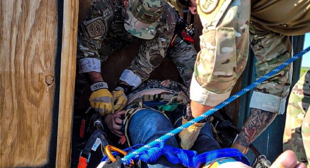 Una mujer embarazada y con una pierna fracturada, fue salvada y extraída de lo alto de un parapeto de cacería en un rancho de Zapata, Texas, jurisdicción de Laredo.