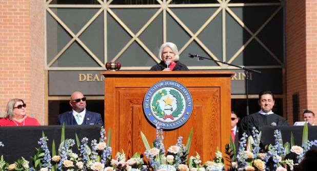 Al concluir la ceremonia, se develó una fotografía de la Senadora Zaffirini y se presentó el nombre en la entrada del edificio del Centro de Justicia.