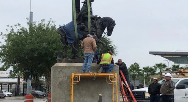 Se trata del Monumento a Don Tomás Sánchez, el fundador de Laredo, una obra que costó un millón de dólares para ser el más costoso en la historia de esta ciudad Laredo y que desde su conclusión hace más de 12 meses, permanece escondido bajo una tela porque las autoridades municipales no se pueden poner de acuerdo donde ubicarlo.