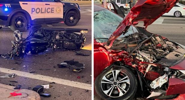 Debido al daño de la jaca de acero, pero sobretodo el impacto en el costado derecho del Nissan, se deduce que la moto iba a gran velocidad.