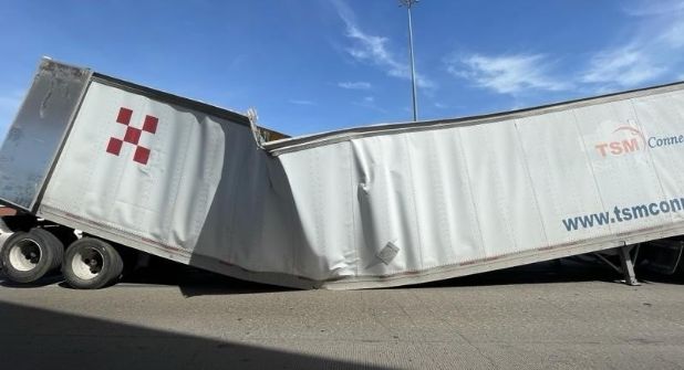 Este viernes, una caja-remolque se partió en el bulevar Bob Bullock carriles en hacia el este, saliendo del Puente Del Comercio Mundial, creando un caos, sobre todo en el transporte de carga.