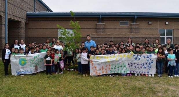 Estudiantes de dos escuelas primarias del sur de Laredo aprendieron a cuidar el ambiente y a festejar el Día de la Tierra sembrando árboles.