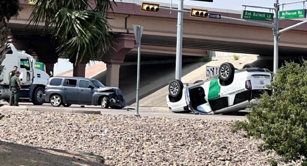 Un agente de la Patrulla Fronteriza fue hospitalizado al volcar su vehículo oficial en una persecución ocurrida a las 03:30 de la tarde de este miércoles en el cruce de Bob Bullock y McPherson, sucedió justo bajo el paso elevado.