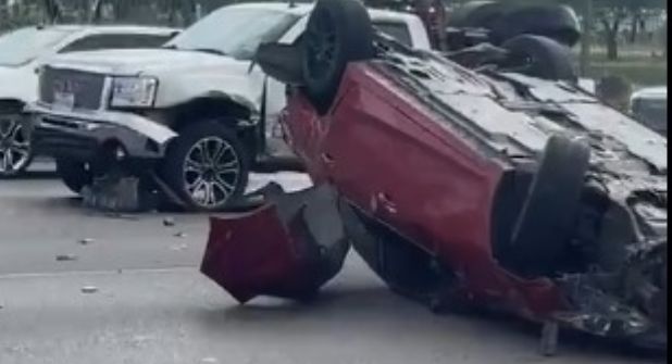 El conductor de un auto de la marca Mazda, en color rojo, resultó con las heridas más graves, ya que este vehículo volcó. En el choque también participaron una vagoneta Toyota 4Runner, color plata; una camioneta GMC Sierra (“pick up”) y levemente un sedán Volkswagen, cuatro puertas, color blanco.