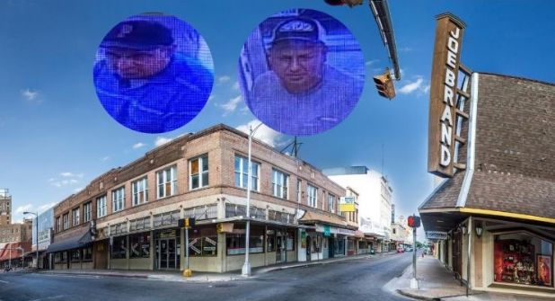 Se ofrece recompensa a quien llame a Laredo Crime Stoppers, número de teléfono 727-TIPS, para proporcionar la identidad de uno o de los dos hombres robustos, de piel morena y con gorras.