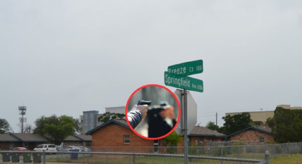 La policía de Laredo, busca a un hombre como posible autor del balazo propinado en la frente a un vecino de las casas de gobierno ubicadas en avenida Springfield y calle Gale, ocurrió a las 05:30 de la tarde de este domingo.