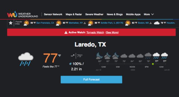 El sitio de predicción climatológica www.underground.com ha emitido una alerta de tornado para la región sur de Texas debido a la influencia de la tormenta tropical Alberto. El National Weather Service (NWS) también ha publicado en su página web los condados que se verán afectados por esta alerta.