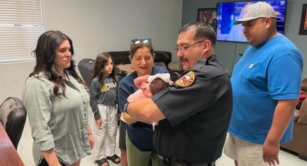 Los paramédicos Rick Salinas y Jorge Moreno, trajeron al mundo a una bebita la madrugada del miércoles 10, ahora la nenita, sus papis y hermanitos fueron a agradecerles a la estación 12 en bulevar Bob Bullock y camino Casa Verde.