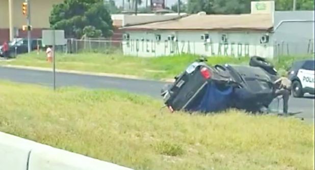 Una persecución del DPS de Texas este mediodía de viernes a una camioneta GMC Sierra, color negro, terminó en volcadura, los dos tripulantes de la troca resultaron heridos y hospitalizados.