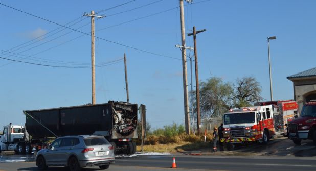 Junto al SAC de UISD y frente a la gasolinería de la colonia Concord Hills, se incendió la chatarra de autos viejos transportada por este trailer, el chofer se paró justo en la estación 11 de bomberos.