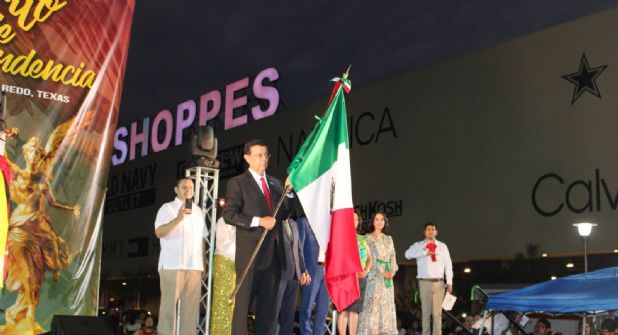 Cientos de mexicanos se congregaron frente a los Outlets de Laredo para conmemorar el 214 aniversario del inicio de la independencia de México con la tradicional ceremonia del grito de Dolores.
