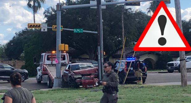 Al menos tres patrullas del DPS de Texas, vagonetas Chevrolet Tahoe, bajaron la rampa de Las Minas hacia Del Mar, siguiendo un carro guindo tipo deportivo, el cual terminó impactado contra un poste de madera.