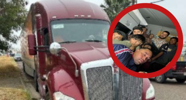 En la esquina de San Bernardo y Tesoro, dentro de un tractor-trailer fueron asegurados 16 indocumentados, tres son mujeres, el golpe lo dio el DPS de Texas este martes 28.