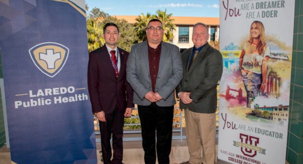 Los organizadores y participantes son el Doctor Richard Chamberlain, Director de Salud Pública de Laredo; Doctor James O'Meara, Decano de la Facultad de Educación de TAMIU, y Reynol Vela, Supervisor del programa de Asociación de Enfermeras y Familias del Departamento de Salud de la Ciudad de Laredo.