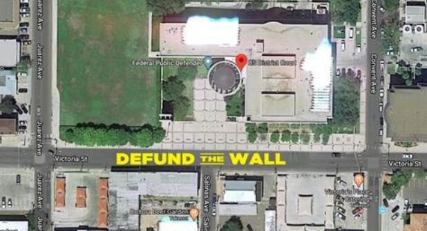 El mural se pintó en la cuadra 1300 de la calle Victoria, frente al edificio de la Corte Federal del Distrito Sur de Texas.