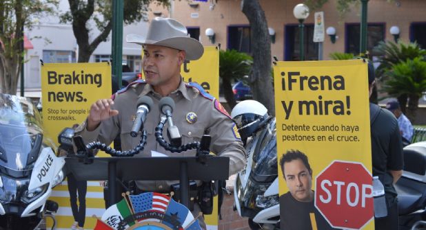 Este jueves se proclamó a octubre como “Campaña del Mes Nacional de Seguridad Peatonal”, por parte del Departamento del Transporte de Texas (TxDOT) y la Ciudad de Laredo, para resaltar el cuidado de la campaña “Maneja Inteligente, Maneja Seguro”, Rafael Guzmán titular de transporte de TxDOT en el Distrito de Laredo; el alcalde Víctor Treviño; el Jefe de Policía de Laredo, Miguel Rodríguez; y Sargento Erick Estrada, Portavoz del DPS de Texas, en la plaza Jarvis, centro donde confluyen muchos caminantes, gente de a pie, hicieron el exhorto a los automovilistas y camioneros para cuidar a los peatones.