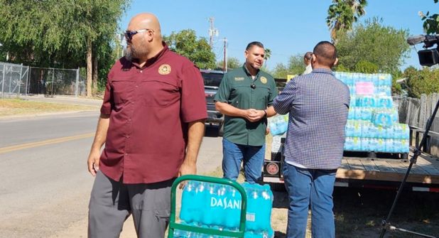 El Comisionado Jesse González y su personal se dieron a la tarea este miércoles de llevar cajas de botellas de agua para donarlas a los residentes de Rio Bravo y El Cenizo mientras se resuelve el problema en la planta de agua.