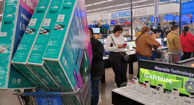 En Wal Mart hubo momentos de gran movimiento de compradores que “saquearon” el departamento de electrónica llevándose televisores de todos los tamaños aprovechando su bajo costo pues había desde 74 dólares hasta 250 en pantallas de 75 pulgadas.