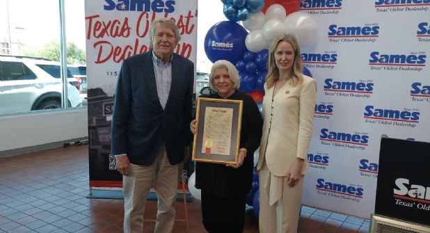 Para reconocer el 115 aniversario de su fundación y la contribución a la economía de Laredo, la Senadora Judith Zaffirini entregó una resolución senatorial a directivos de la empresa Sames Auto Group.