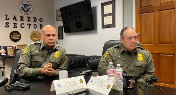 Muñoz, Jefe de la Patrulla Fronteriza Sector Laredo, en compañía del Sub Jefe de la corporación en esta zona, Desi De León, tuvieron un encuentro con la prensa de los dos Laredos, la mañana de este viernes 07.